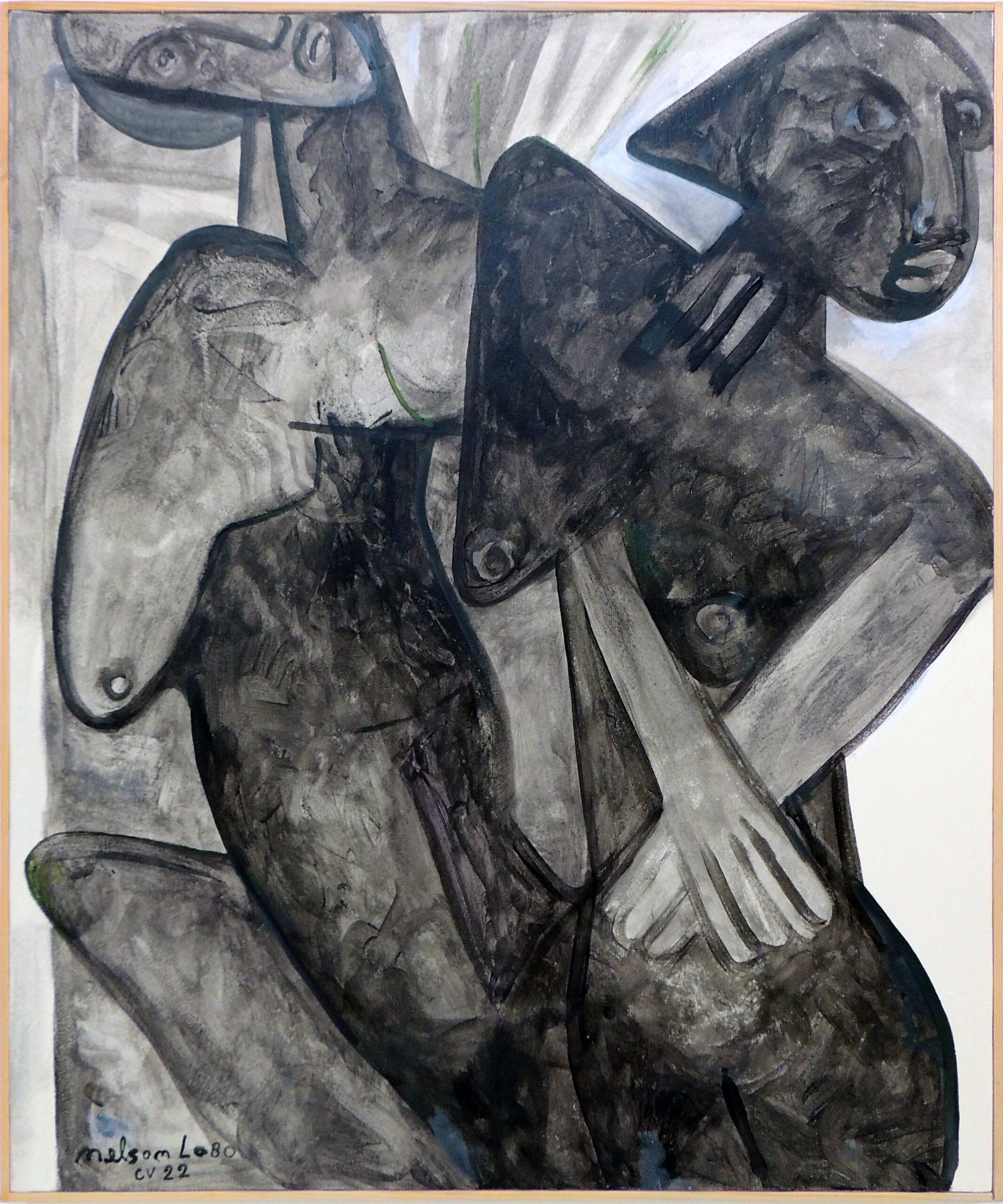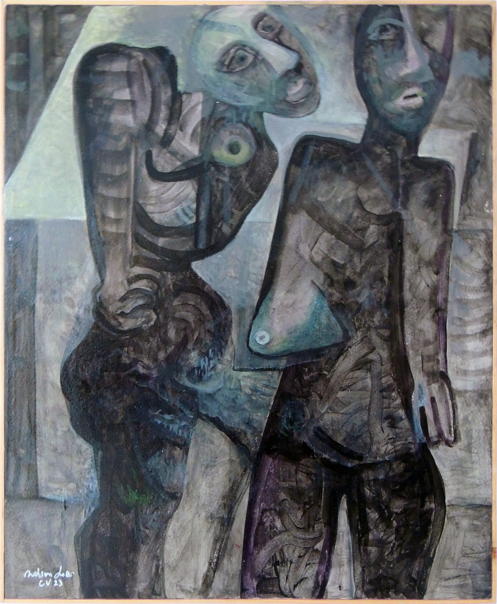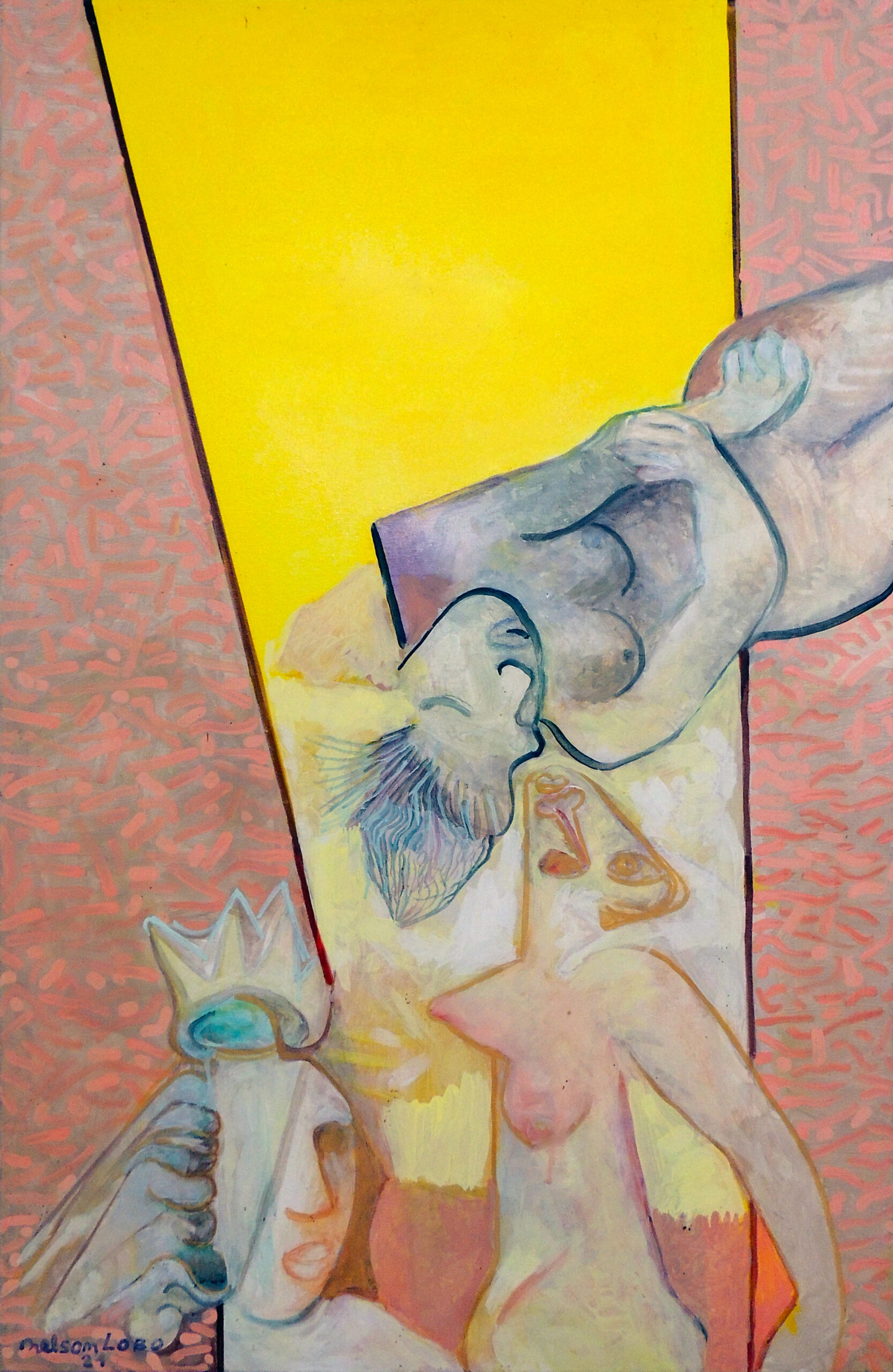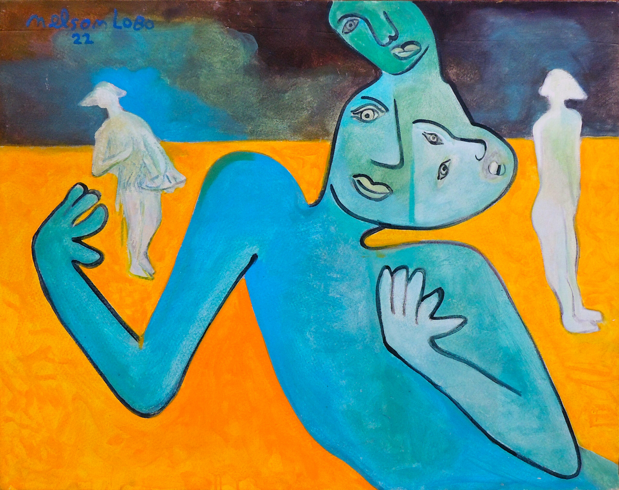 Nelson Lobo est un peintre et artiste plasticien d’origine capverdienne connu pour les formes cubistes, impressionnistes et pointillistes qu’il emploie dans ses oeuvres. Ces tableaux iconiques sont notamment reconnaissables par la recherche plastique autour du nu féminin. Ce dernier est le sujet de prédilection qui le guidera tout le long de ses cinquante années de carrière artistique. Il met en scène des protagonistes qui dialoguent et s’entrechoquent, des regards chargés d’authenticité et de mystère, des corps dans toute leur complexité le tout dans une palette de couleurs vibrantes qu’on lui connait bien. Son inspiration artistique est étroitement liée à l’histoire de vie.