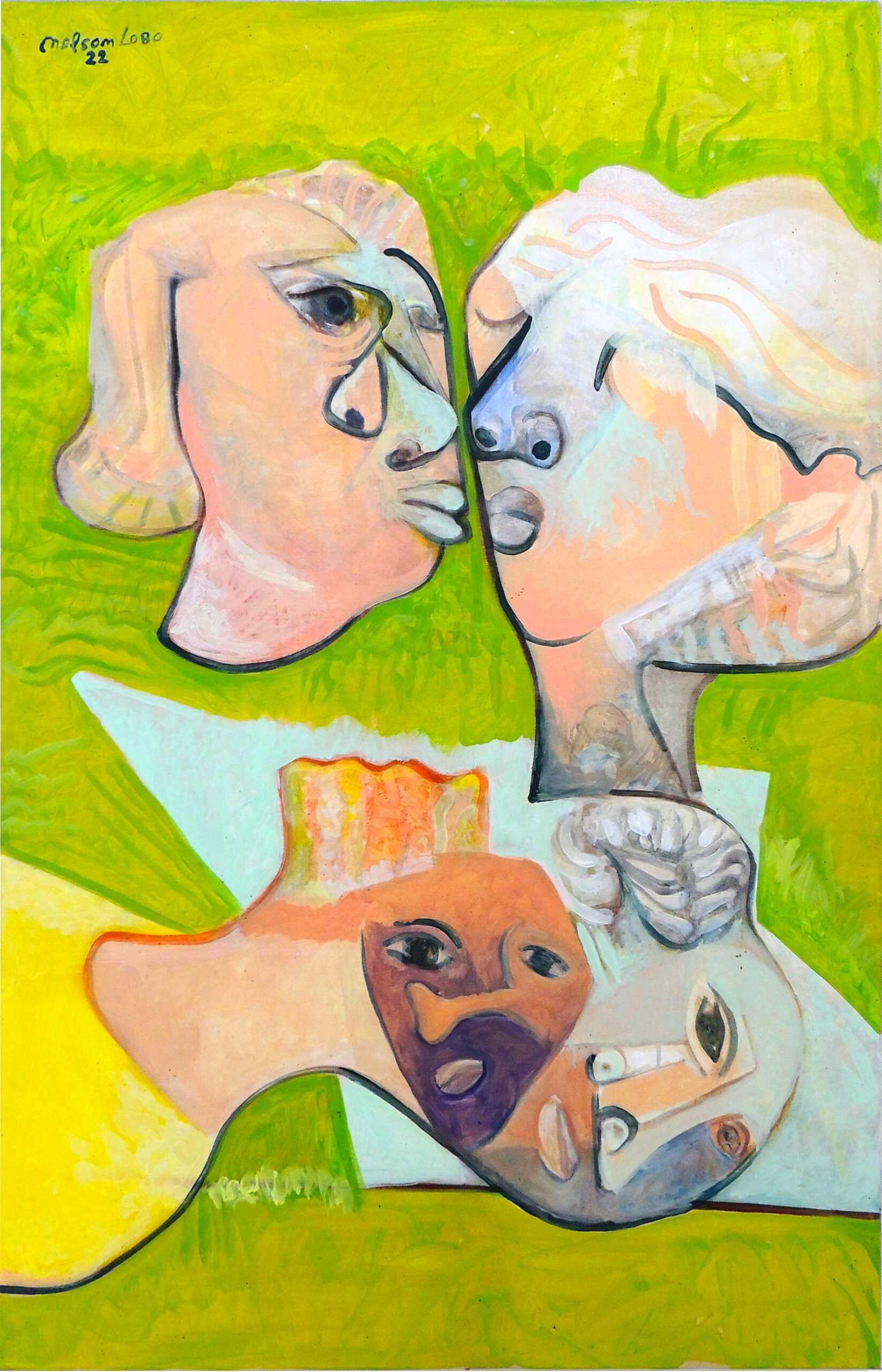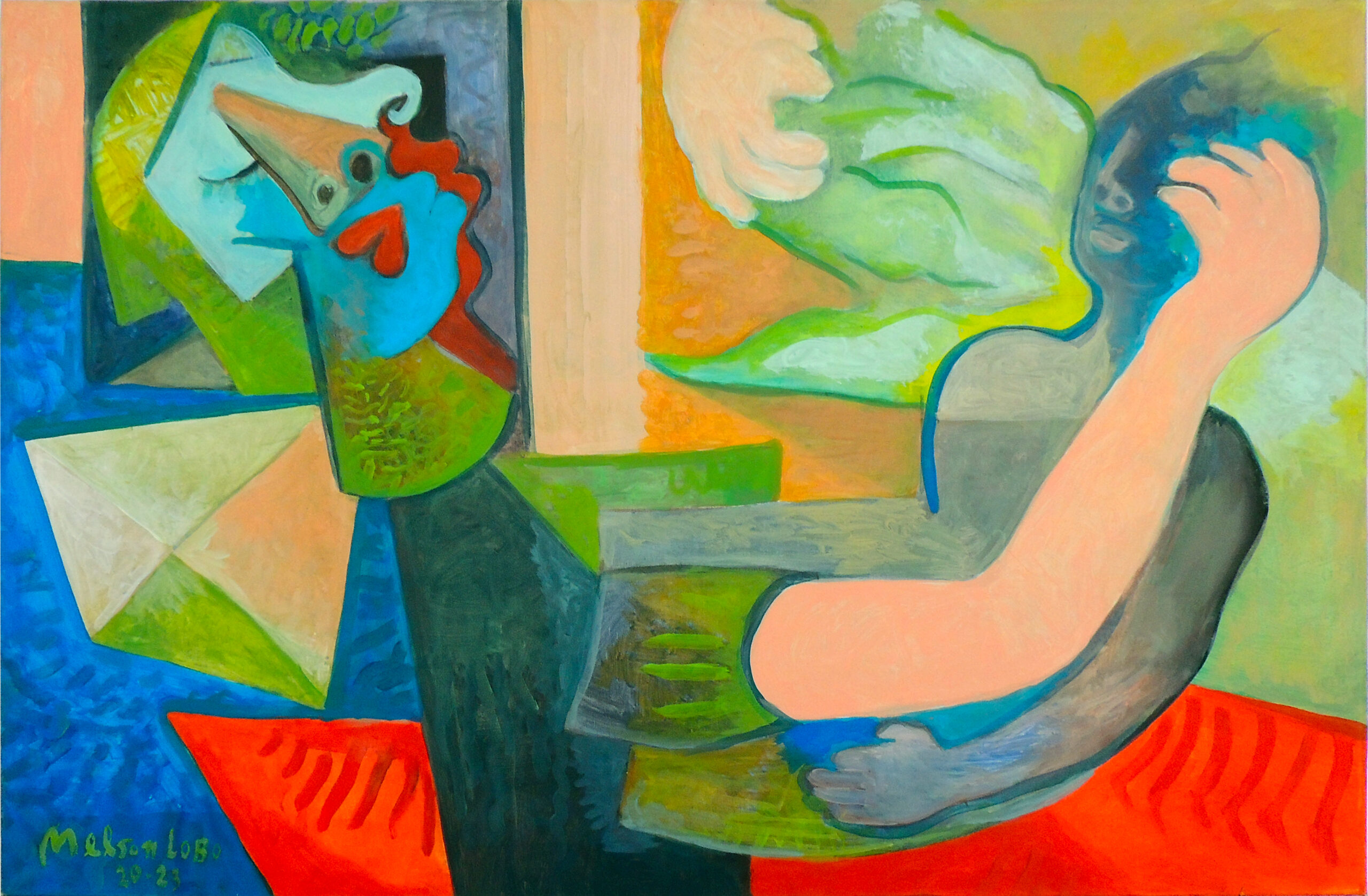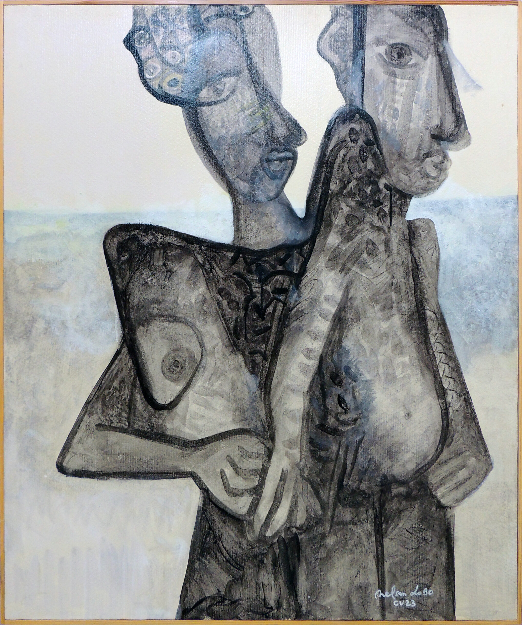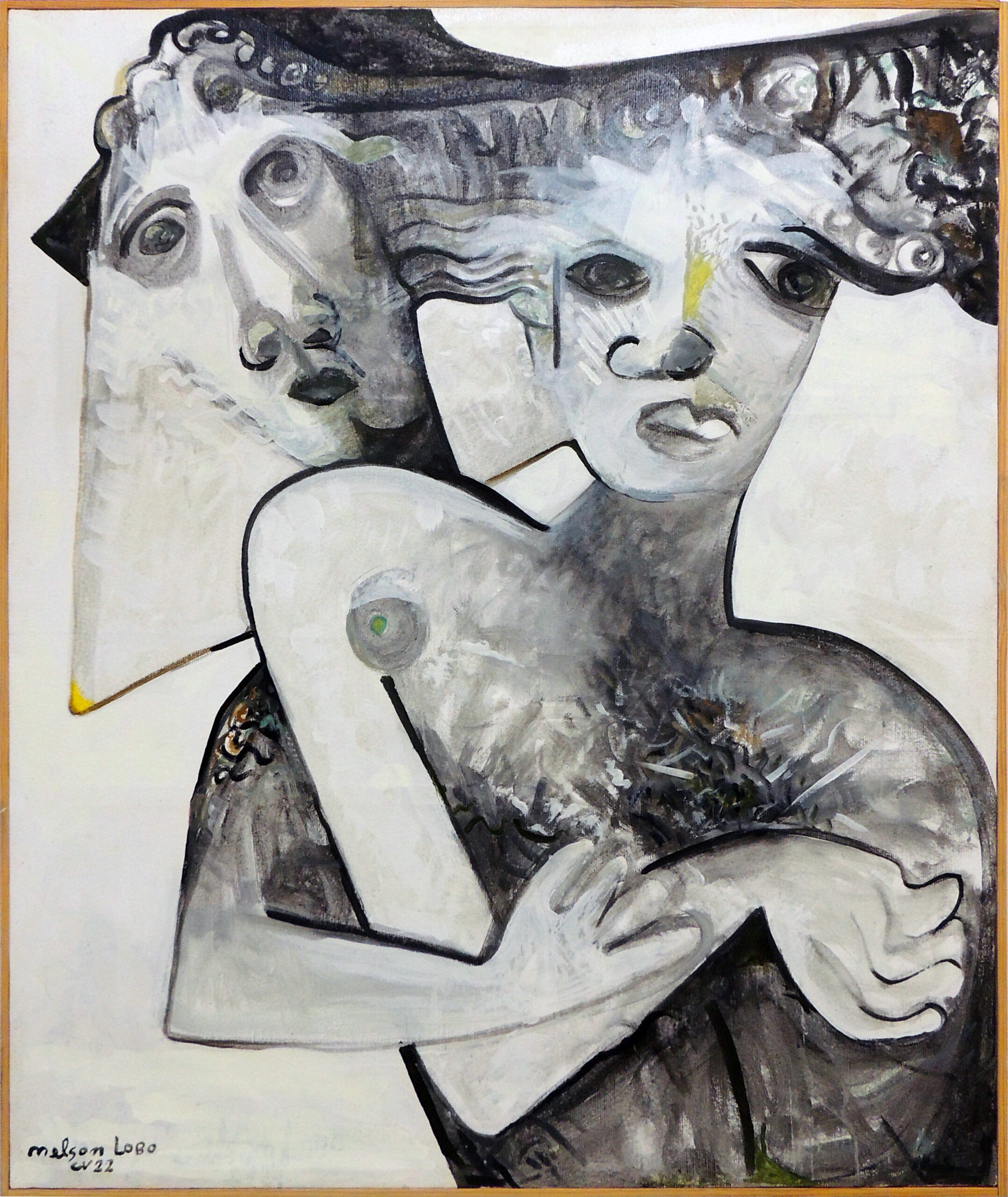 Nelson Lobo est un peintre et artiste plasticien d’origine capverdienne connu pour les formes cubistes, impressionnistes et pointillistes qu’il emploie dans ses oeuvres. Ces tableaux iconiques sont notamment reconnaissables par la recherche plastique autour du nu féminin. Ce dernier est le sujet de prédilection qui le guidera tout le long de ses cinquante années de carrière artistique. Il met en scène des protagonistes qui dialoguent et s’entrechoquent, des regards chargés d’authenticité et de mystère, des corps dans toute leur complexité le tout dans une palette de couleurs vibrantes qu’on lui connait bien. Son inspiration artistique est étroitement liée à l’histoire de vie.